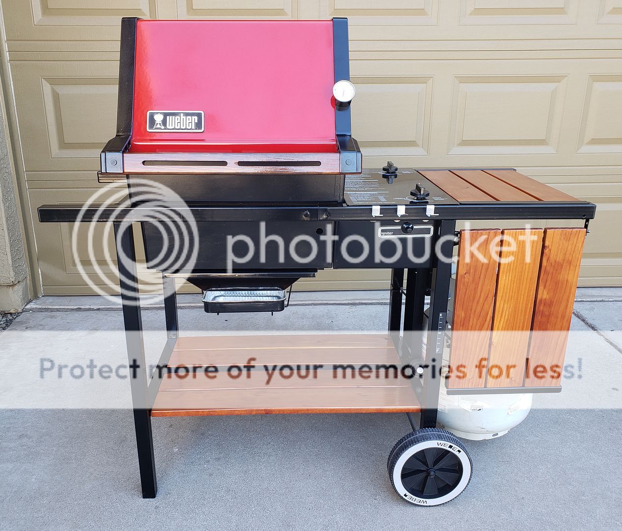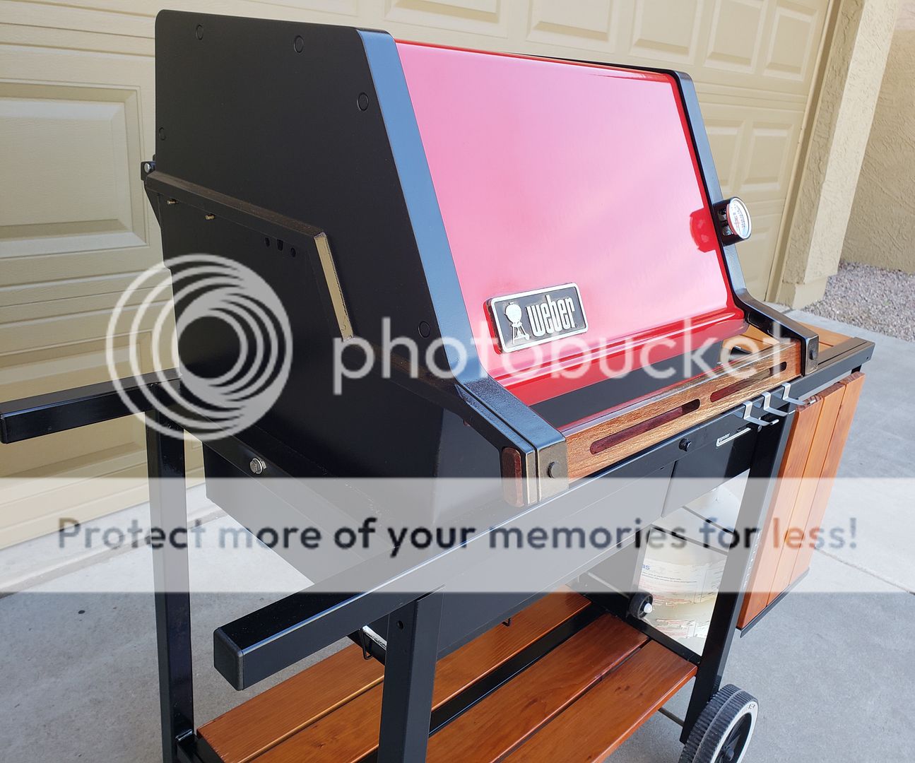 Here is the completed 85-86' GEN JR. All in all...very happy w/ how it turned out!! Uncountable labor hours..ugg!! Dirtiest grill I've ever restored..this was a 1 owner grill (GRANDMA in Mesa, AZ). I don't think she EVER cleaned it!! After tips on this forum, I have now discovered oven cleaner..amazing!! works awesome on the porcelain...just beware..it will strip paint. NOTE: the bottom "H" split frame. no where could i find in the weber history how this frame coincides w/ the Jr.? we all concluded its a rare beast. Luckily, NO rust, cleaned up, sanded, and painted like a champ! was able to reuse survivor handle, control knobs, warming rack, cooking grate, and flavorizer bars. Had NO manifold bracket--discovered weber #83705 manif. bracket for a sprit 500 works perfect. Transported yesterday to my storage unit to add to my private collection.