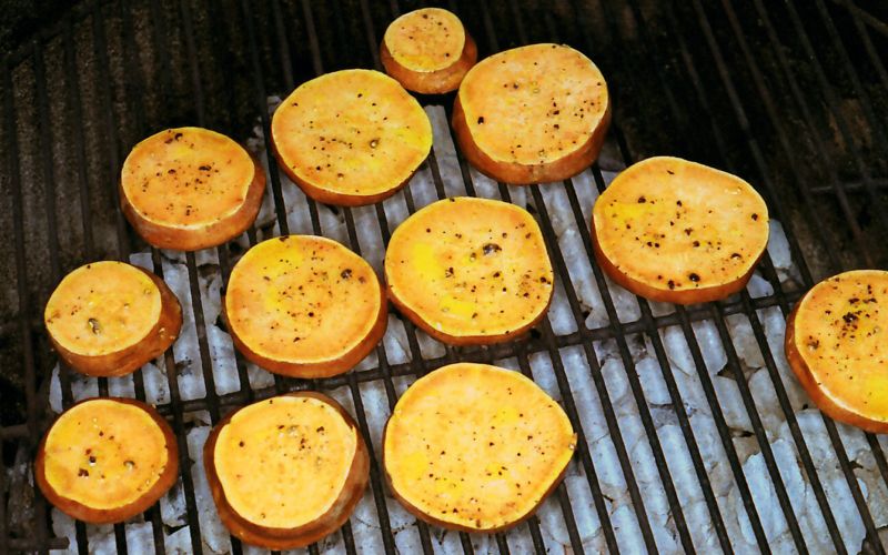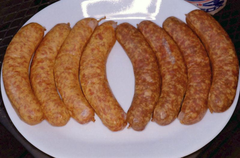 The last cook was just Trinko Sausage brats (left) and Polish sausage (right) with the appropriate condiments and sweet potatoes. Nothing fancy, but the sweet potatoes went over really well: