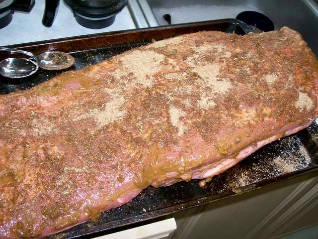Kevin-- Yes. If the end of the flat will be near the side of the cooker I often do. This brisket was long and the end of the flat was thinner than I like. To fit the thing in I wedged it between the handles, bowing it up in the center and sticking folded foil under the flat to deflect direct heat.