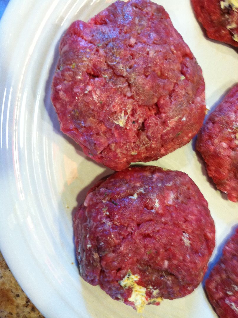 A dab in middle of patty and enclosed with meat