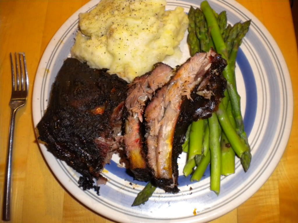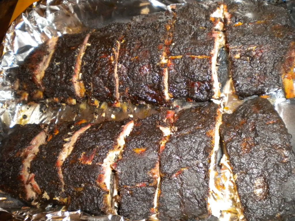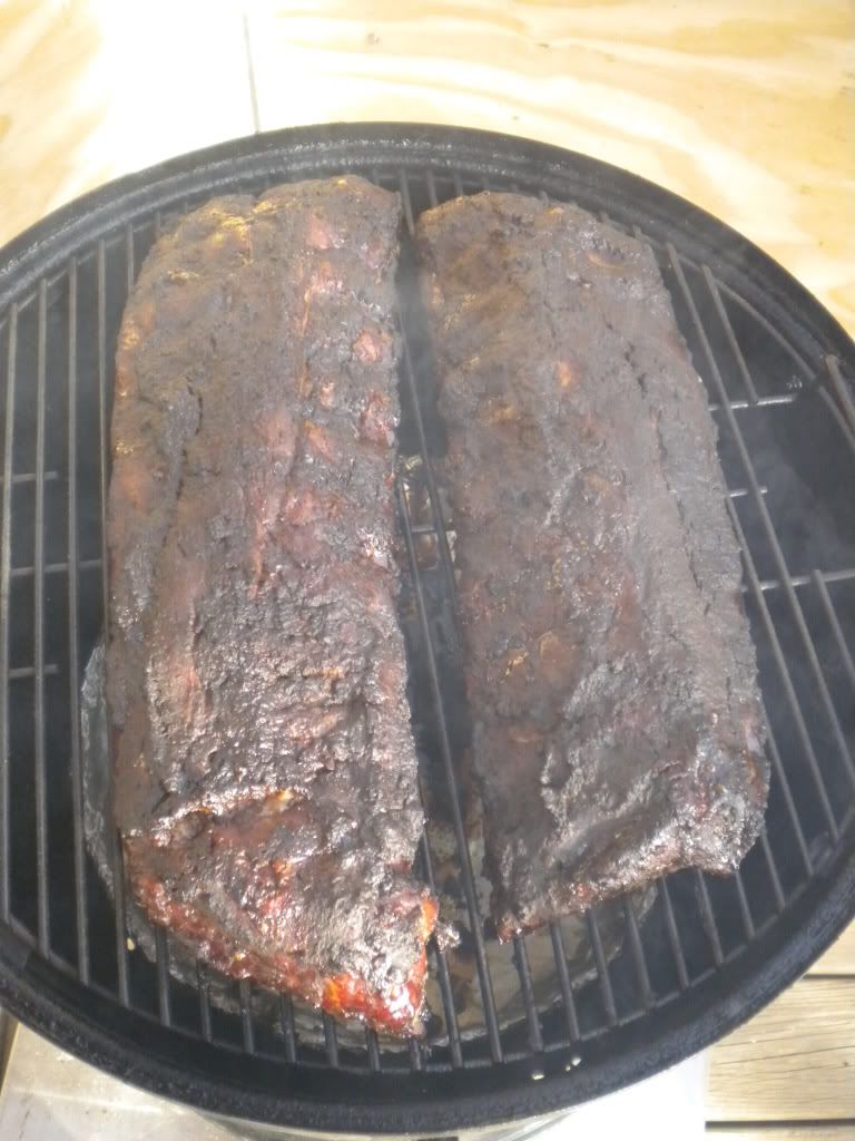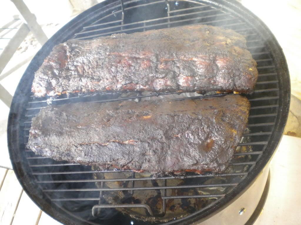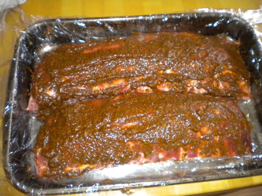 Ever since I bought my WSM I've been wanting to cook up a couple racks of steven raichlen's "cousin dave's chocolate chili ribs". So today I finally did.