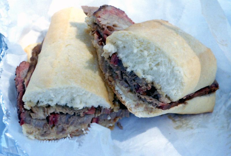 The brisket is served like it's French dip which is different, but good. I think I liked it best but it was also the first thing I tried, so maybe I'm a little biased. Regardless, it was good bare, on the sandwich, and dipped and I think it was the smokiest of the 4.