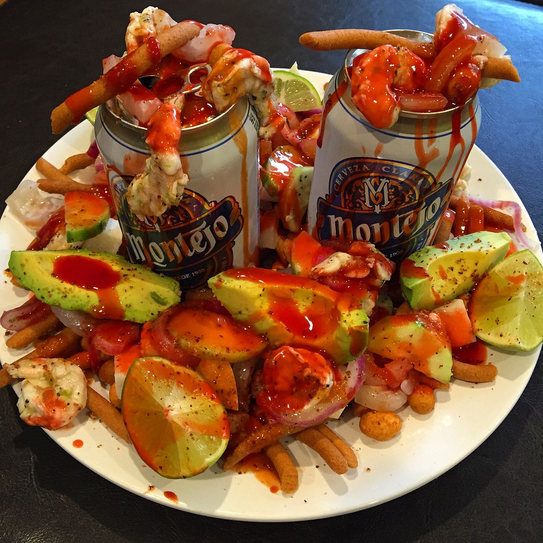 Later she made me a beer plate. Used the aguachiles,peanuts,churritos,cucumber,jicama,lime juice,chili powder and hot sauce.