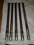 Burners all 2-years old - "Set of 4" stainless steel main burner tubes for Weber Summit 400 Series (Weber part# 67553), "model years 2007 and newer". Each burner tube measures 20-1/2" long with top side flame hole porting. All burners feature an air/fuel mixture adjustment shutter with insect screen on the venturi end and a forked mounting tab on the back end.