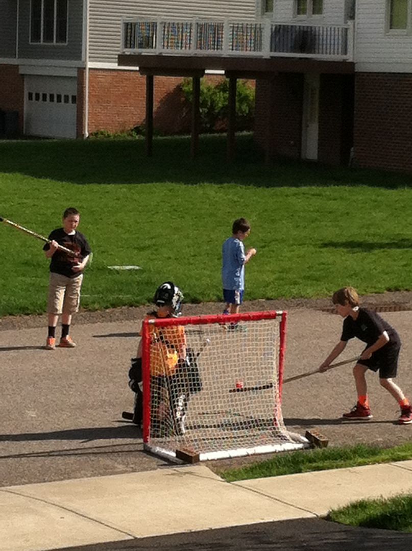 Playing a lil street hockey should keep em busy til the first pitch !