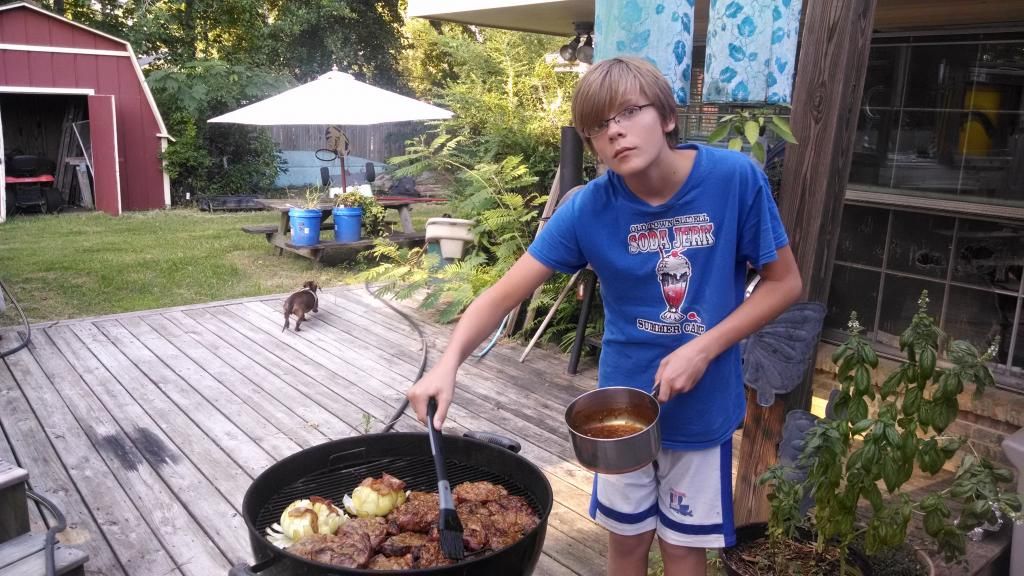 So I spent Independence Day running a food concession at the Slidell Heritage Festival as a fund raiser for the Slidell High School Marching Tigers. We cooked hamburgers and hot dogs for a crowd of around 4500 (I managed to sprain my knee and I still smell like grilled hamburger). It made for a long hard day. Saturday was spent cleaning and rehabilitating the equipment. On Saturday evening I was at the store with my daughter and she asked if we could have Teriyaki Pork Chops for dinner on Sunday. I said, "Oh Baby... Daddy thinks that... is a great idea!". So I bought some chops and the stuff for Teriyaki marinade and off we went...